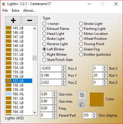 - Spiegeln entlang der X-Achse ändert zwischen linkem und rechtem Blinker